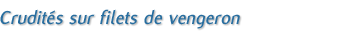 Préparation : Emulsionner le fromage blanc, le jus de citron, le vinaigre, le sel et le poivre, la ciboulette. Mélanger aux petits légumes (sauf les feuilles de chou). Disposer une feuille de chou par assiette. Pocher les filets de vengeron quelques minutes au court-bouillon ; les égoutter. Disposer chaque filet (légèrement tiédi) sur une feuille de chou et y ajouter le mélange de crudités. |